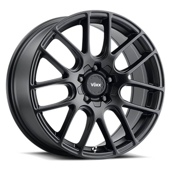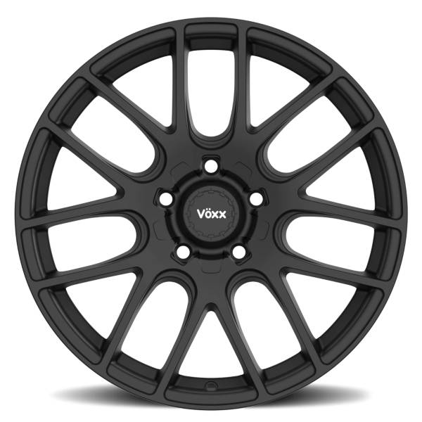 Its features include a split seven-spoke mesh wheel with sleek spokes that create a sense of rapid movement. The central hub is inset with partially exposed lugs and a center cap featuring the Vӧxx brand logo. The center cap is a “flip-cap” style that cleanly hides unused lug holes to maintain that “direct drilled.”