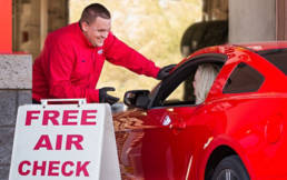 Simply roll up to our air check line, wait your turn, and a team member will check your tire’s air pressure to ensure you’re good to go. We will also inspect your tires for any potential damage to keep you rolling as safely as possible.